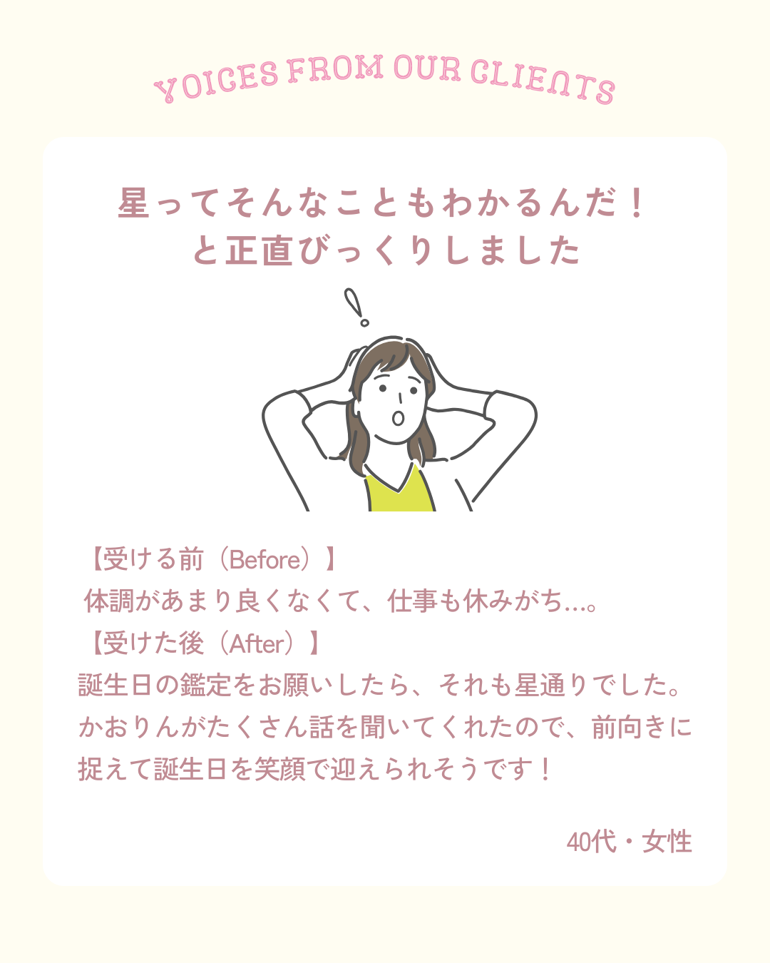 一度受けていただいた方はほぼリピートしてくださる大人気鑑定です⭐︎